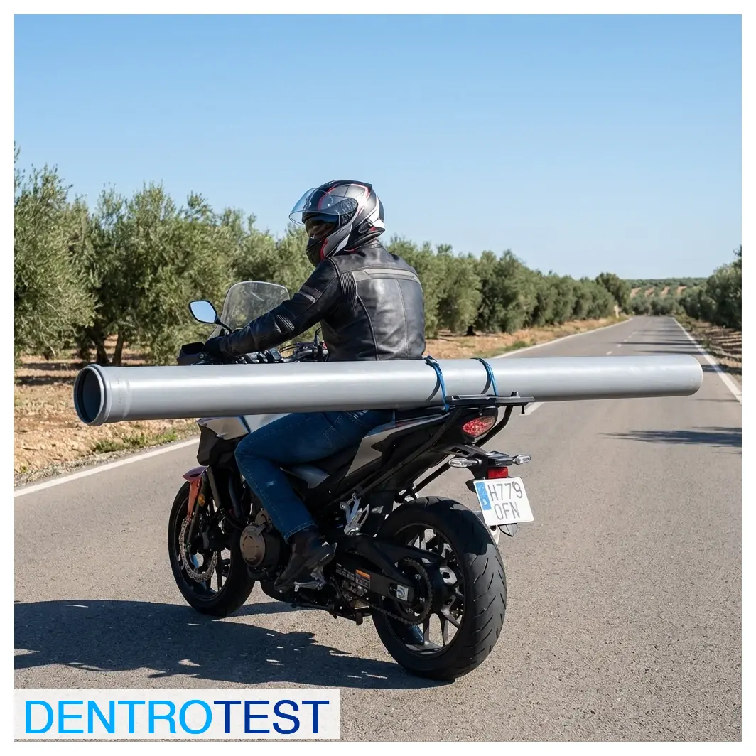 En los vehículos de anchura inferior a un metro, como las motocicletas, ¿cuánto puede sobresalir la carga en sentido longitudinal?