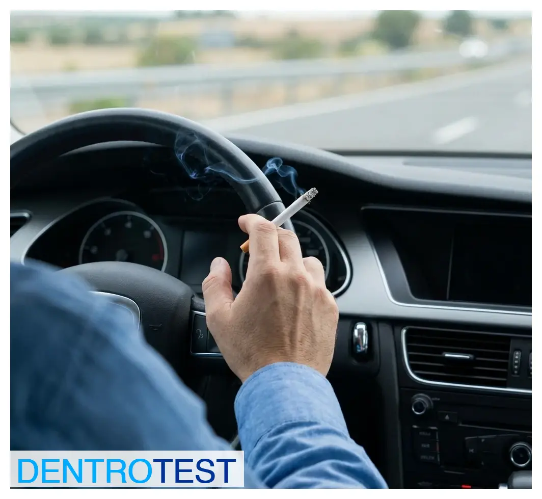 Si un conductor fuma dentro de su vehículo, ¿dónde debe depositar las colillas para cumplir con la normativa de seguridad vial?