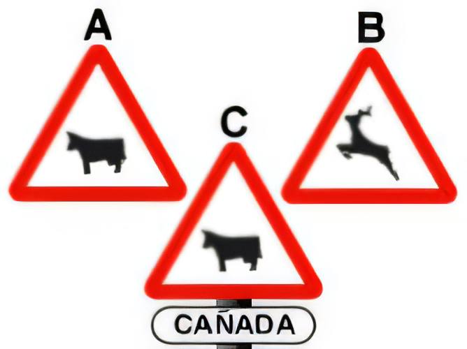 Which of these signs grants right-of-way to animals over drivers?
