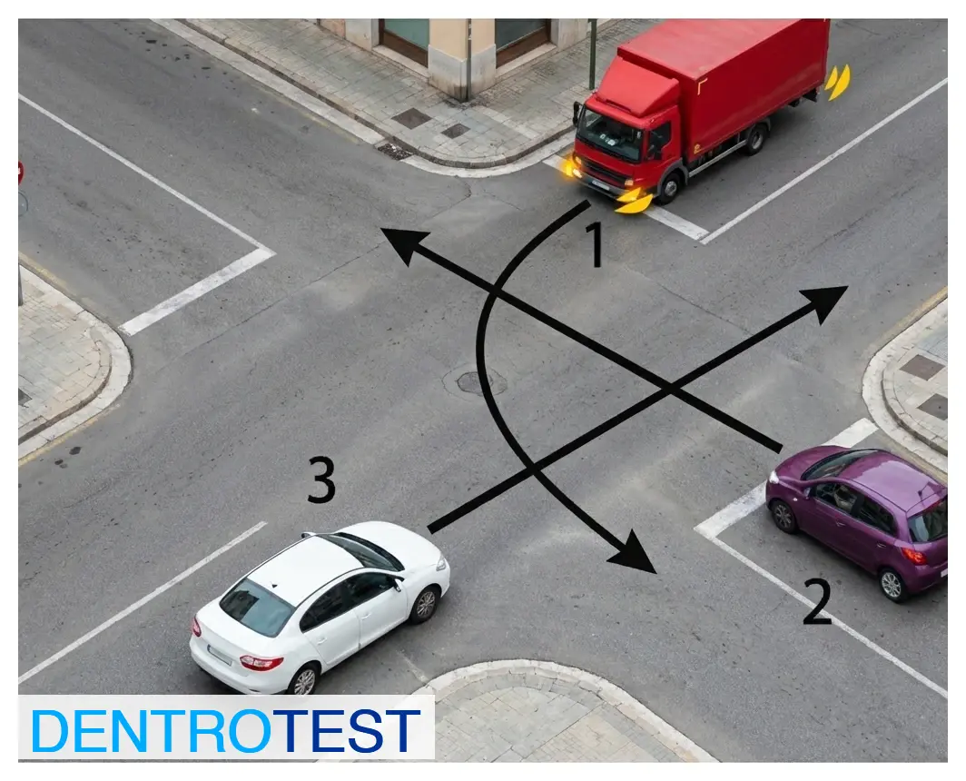 In this intersection with equal priority, in what position in the sequence will vehicle No. 3 go through?