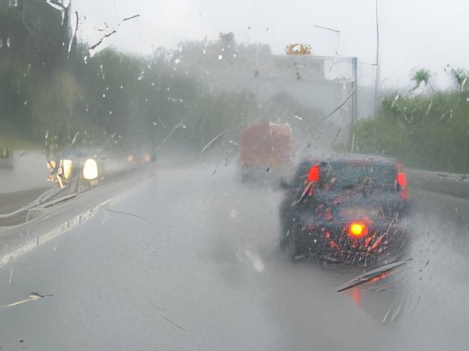What lights must we use as a minimum when riding in heavy rain or fog?