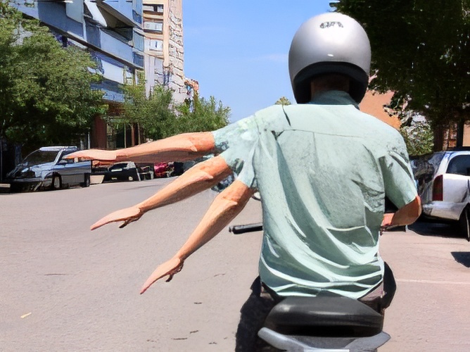 What does this driver indicate by moving his arm alternately up and down with short, rapid movements?