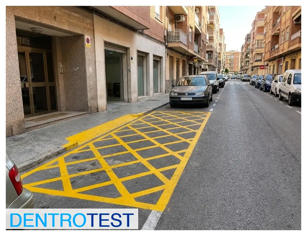 What do yellow criss-crossed lines forming a grid on the road surface indicate?