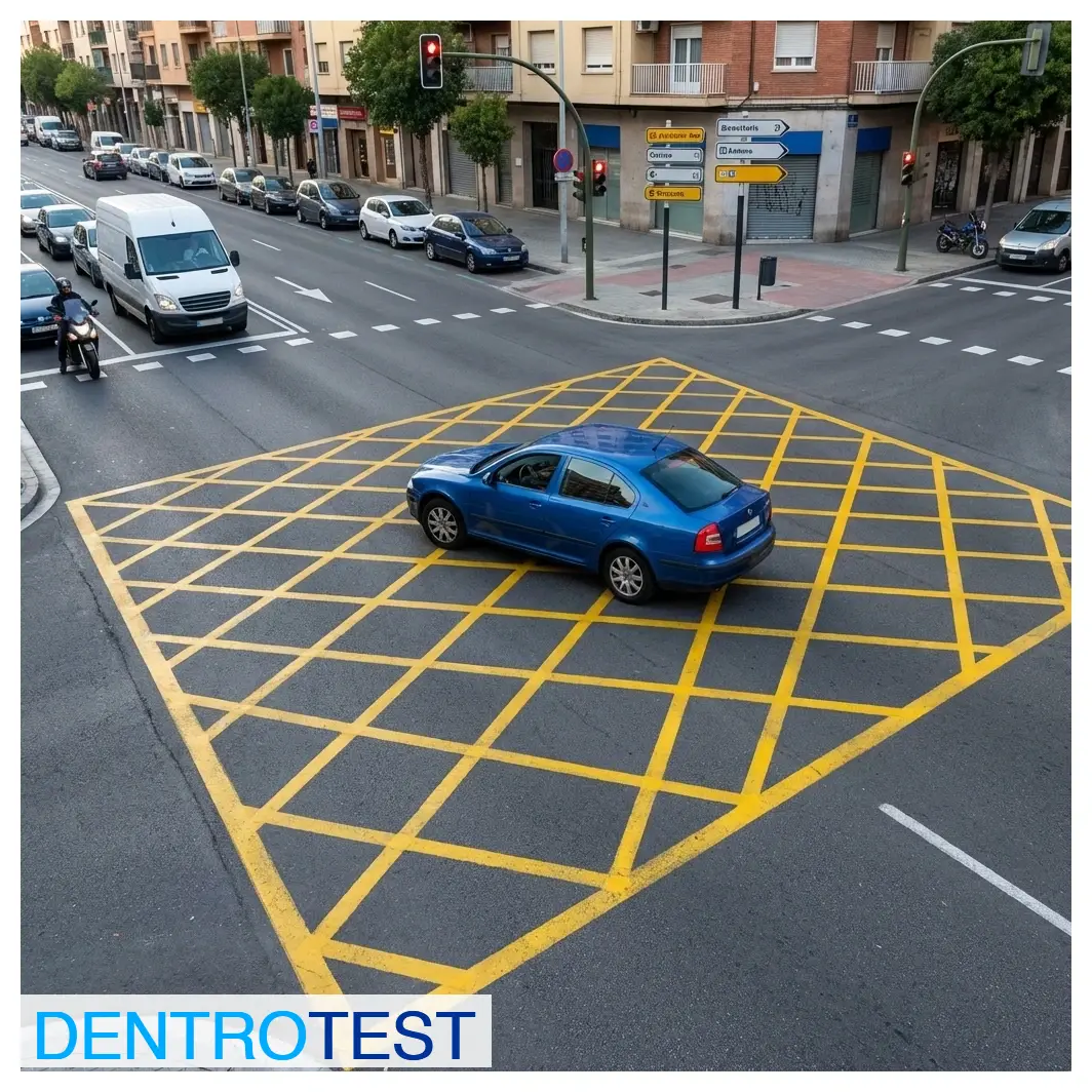 Facing a yellow grid road marking, what behavior is prohibited?