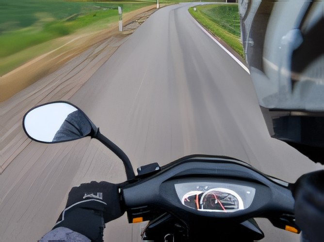 What should we do to ride a motorcycle down a long descending slope?