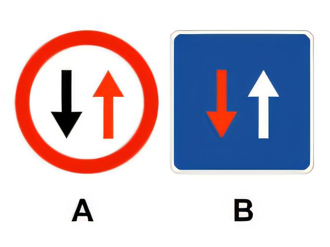In a narrow passage, which of these signs grants the right of way over oncoming traffic?