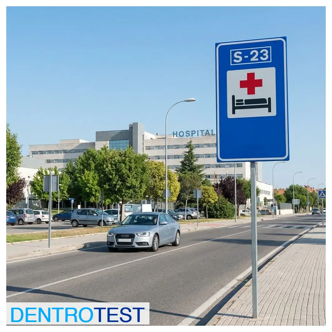 Upon approaching the S-23 (Hospital) sign, what specific precaution must drivers adopt regarding the environment?