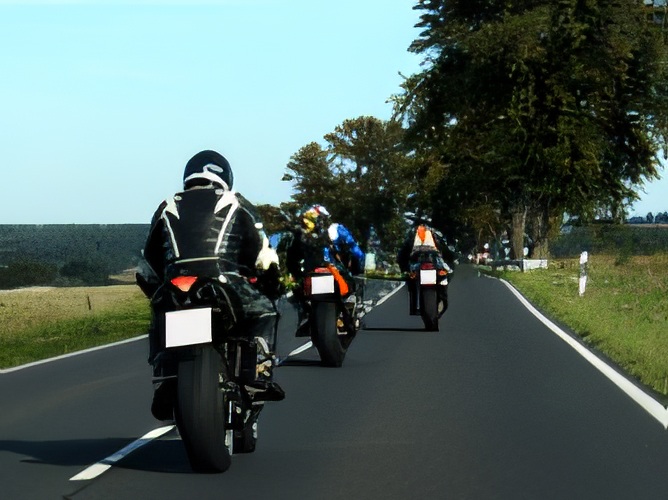 If we ride in a group with other motorcycle riders, what safety distance should we maintain with the motorcycle in front of us if we do not intend to overtake?