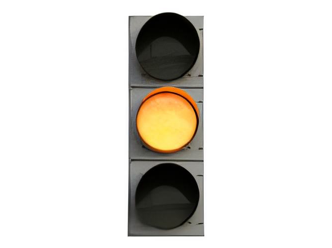 With your motorcycle, what should be your behavior at a steady yellow traffic light?