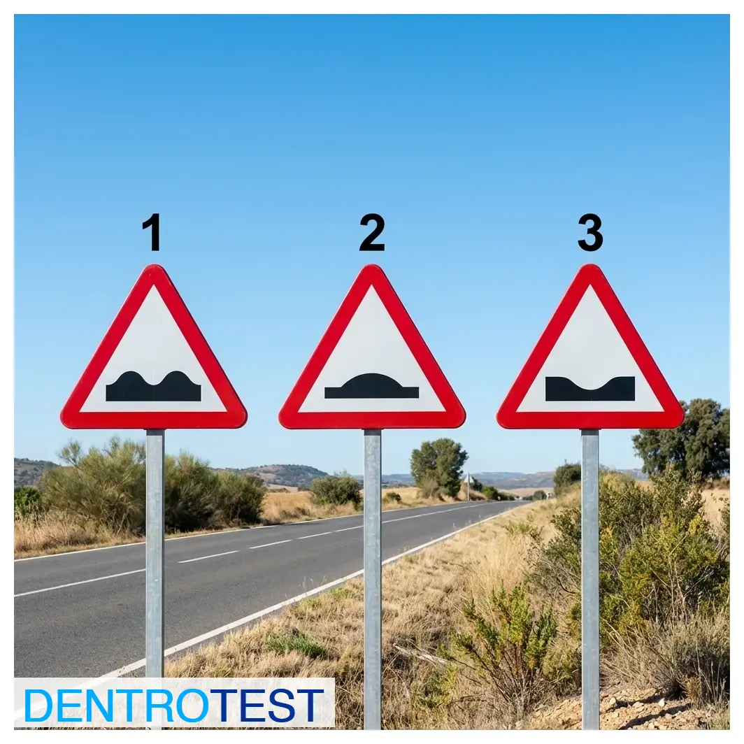 Which of the following warning signs specifically indicates the proximity of a bump on the road?