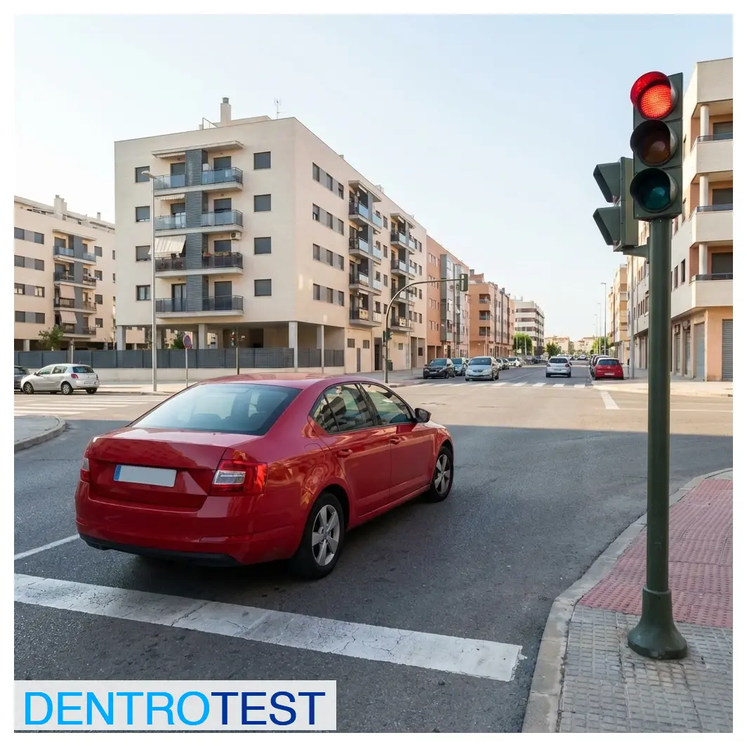 If you encounter a red traffic light before an intersection, what is the correct place to stop the vehicle?